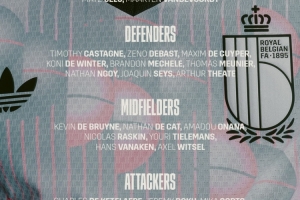 比利时队名单:德布劳内、卢卡库、多库、奥蓬达、特罗萨德在列