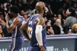 詹姆斯转发了在昨日湖人116-99主场击败篮网比赛中他助攻布朗尼投进三分的片段,并评论道:“他&他???”