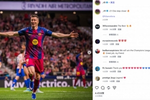他也在赛后通过社媒晒出自己的庆祝照,并配文:“再添3分!更近一步?@巴萨俱乐部”。